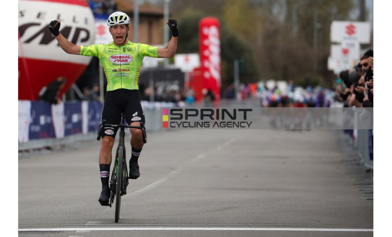 Ricompattatosi quindi il plotone, si entra negli ultimi dieci chilometri dove, sfidando con una mossa ardita tutte le squadre dei velocisti, Filippo D’Aiuto attacca in solitaria. Il goriziano, mai vittorioso tra i grandi in carriera, dimostra di credere per davvero nel suo allungo arrivando in fretta a guadagnare 22 secondi sugli inseguitori, un margine che alla fine, anche tirando a tutta per lanciare la volata, da dietro non riescono più a ricucire. Con ancora cinque secondi di vantaggio l’alfiere della General Store - Essegibi - F.lli Curia (sua squadra da quest’anno dopo un 2025 speso a difendere la causa della Petrolike) piomba così sul traguardo dove, a braccia alzate, può liberare la sua gioia per il primo successo tra i professionisti.