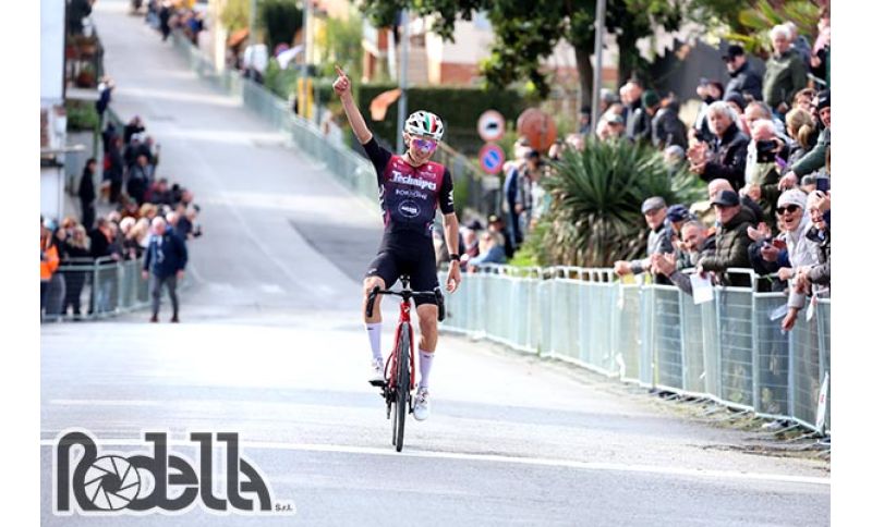 La 64^ Coppa Fiera di Mercatale Valdarno per élite e under 23, una delle corse regionali dal passato più prestigioso, su di un percorso inedito per ragioni di viabilità, è stata firmata quest’anno dal grossetano Tommaso Bambagioni della Technipes InEmiliaRomagna Caffè Borbone autore di una finale splendido. Reduce dalla Settimana Internazionale Coppi e Bartali (ottenne l’ottavo posto nella prima tappa conclusasi a Barolo) Bambagioni con una progressione fantastica ha lasciato tutti presentandosi da solo sul traguardo in salita di Mercatale Valdarno. Per Bambagioni, classe 2005, si è trattato della sua prima vittoria tra gli under 23, mentre sono diversi i piazzamenti che Tommaso ha conquistato in carriera con diverse esperienze anche nelle gare dei professionisti. Soddisfazioni anche per il patron Gianni Carapia, Michele Coppolillo, Gianluca Giardini e tutto lo staff del sodalzio romagnolo.