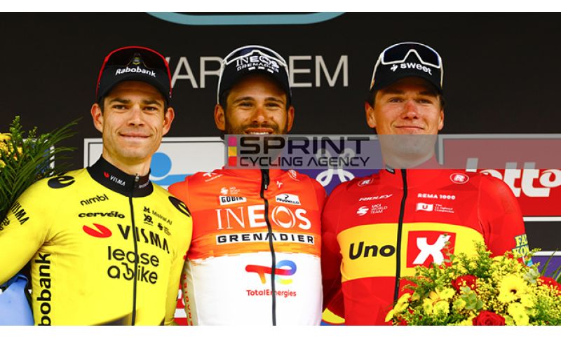 Il fiammingo della Visma -Lease a Bike a 25 chilometri dal finale era con Niklas Larsen (Unibet Rose Rockets) e Romain Grégoire (Groupama-FDJ). L’accelerata di van Aert sul Nokereberg, ha fatto staccare Grégoire e poi durante il secondo passaggio sul Nokereberg, superata la Waregemsestraat, il belga ha lanciato un'ultima accelerazione che ha fatto arrendere anche il corridore della Unibet Rose Rockets.