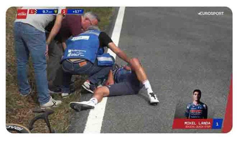 Quello di ieri non è stato sicuramente il finale di tappa che Mikel Landa e tutta la Soudal Quick-Step si aspettavano di vivere. Il corridore basco ha infatti sì tagliato il traguardo di Cuevas de Mendukilo ma lo ha fatto in 67ᵃ posizione, a 13’11” da Paul Seixas, ma soprattutto con evidenti ammaccature ed escoriazioni di cui egli avrebbe certamente fatto a meno.