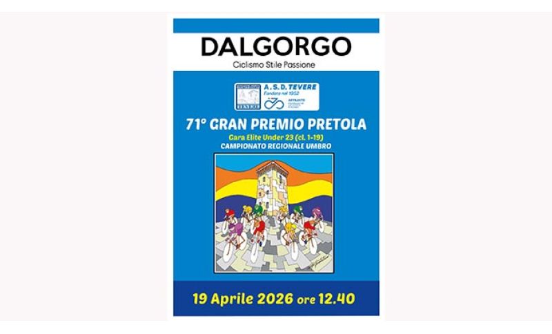Sarà la salita di Casaglia, già dominata dal Campione del Mondo Tadej Pogačar nella crono perugina del Giro d’Italia 2024, a decidere le sorti della 71ma edizione del Gran Premio Pretola, gara per Elite e Under 23 che si svolgerà a Pretola (PG) domenica 19 aprile 2026.