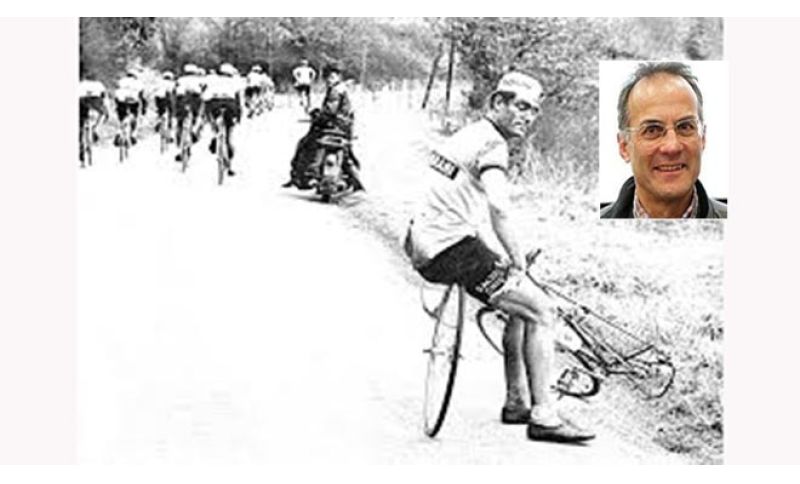 Zandegù consuma il suo dramma stradale con filosofia ciclistica. “Si fermano diversi cambi-ruota – ricorda, con una verità che stavolta non sembra arrivare al 90 percento – e cercano di aiutarmi, ma ogni volta la speranza svanisce davanti all’imprecisione, all’inadeguatezza, all’imperfezione. Insomma, è come se la mia ruota, o il mio mozzo, o il mio cambio, probabilmente il mio destino, non coincidano con quelli previsti dagli standard degli organizzatori. Tanto da non trovare la ruota giusta”. Il tempo, intanto, trascorre implacabile e, aggiunge Zandegù, “davanti Merckx e Gimondi, Stablinski e Poulidor, Janssen e Reybrouck non aspettano nessuno, chi ha gambe e ruote gonfie attacca, chi ha gomme e morale a terra si attacca al tram o sale sul camion-scopa”. Ma lui no, lui stoicamente resiste: “La prima ammiraglia, quella con Luciano Pezzi, segue Felice, l’altra ammiraglia, la seconda, segue il gruppo. Decido di aspettarla. Quando arriva, finalmente, per smorzare la tensione chiedo ‘dove eravate?, al bar?’, mentre il meccanico procede a sostituire la gomma. Pronti e via. Riemergo, ricupero, rimonto, rifiato quando riesco a riaccodarmi ai ritardatari. Ma è dura, perché fra una gomma e l’altra avrò perso anche un quarto d’ora”.