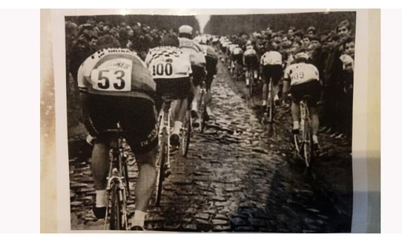 Domenica 7 aprile 1968, 262 chilometri, 136 partenti, pronti via. La Parigi-Roubaix. Di bello, il tempo. Di brutto, tutto il resto. Di orrendo - da qui in poi prendete le cifre con beneficio d’inventario - intorno al centoventesimo chilometro, Dino Zandegù padovano di Rubano, anni quasi 28, maglia Salvarani, dorsale 110, al suo secondo (e ultimo) “inferno del nord” (il primo concluso in un ospedale), passata indenne la foresta di Arenberg (in una delle foto, è il penultimo della fila sulla banchina destra, alla sua ruota Poggiali), sente la ruota ballare. Sgonfia, forata. Finché, a terra la ruota, a terra anche il morale. Dino scende dalla bici, mette i piedi allo stesso livello di ruota e morale, cioè a terra, stacca la ruota, è quella posteriore, tiene la bici con la mano sinistra, si siede sul cerchione e aspetta una ruota come si deve.