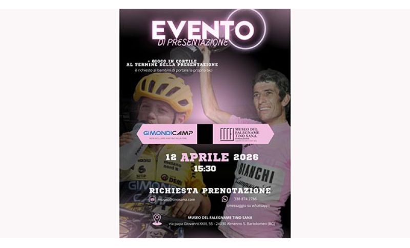 Il Museo del Falegname Tino Sana celebra il ciclismo con la presentazione del Gimondi Camp – edizione 2026, il progetto dedicato ai bambini dai 5 ai 12 anni appassionati delle due ruote.