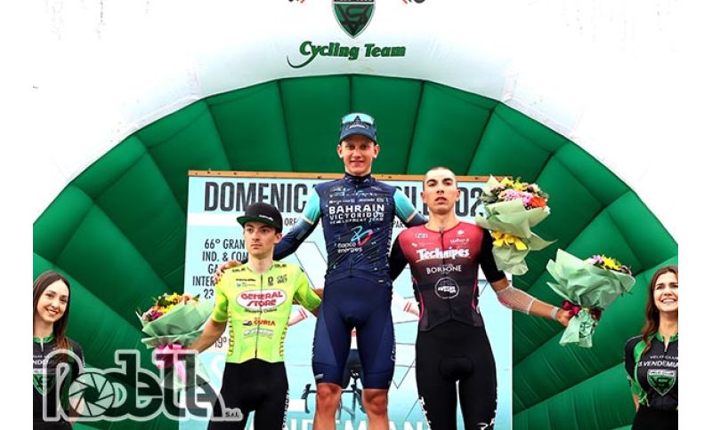 Impresa solitaria del giovane polacco Jan Jackowiak sul traguardo del 19° Trofeo Città di San Vendemiano. Il portacolori della Bahrain Victorious Development, 19 anni da compiere il prossimo 23 dicembre, ha messo il sigillo sull'internazionale Under 23 splendidamente allestita anche quest'anno dagli uomini del Velo Club San Vendemiano capitanati dal Presidente, Fabrizio Furlan.