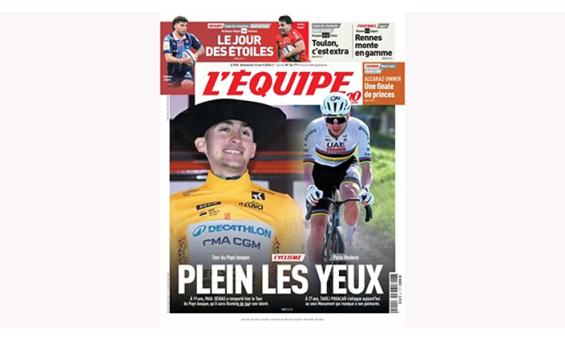Nel giorno della Roubaix, L’Equipe ha dedicato 11 pagine alle due ruote, di cui le prime due al Giro dei Paesi Baschi, terreno di conquista per Seixas, che, parlando di corse a tappe del WT, ha anche il merito di aver messo fine ad un digiuno durato 19 anni per i corridori transalpini.