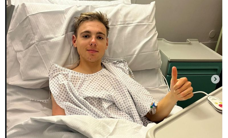 Sui social questa mattina il 19enne della Red Bull Bora Hansgrohe Rookies ha postato l'immagine con il pollice alzato e la radiografia del polso destro fratturato, già operato a Genova: «L'intervento è andato bene e non vedo l'ora di tornare presto in sella alla mia bici. Grazie alla Clinica Villa Serena per essersi presa cura del mio polso».