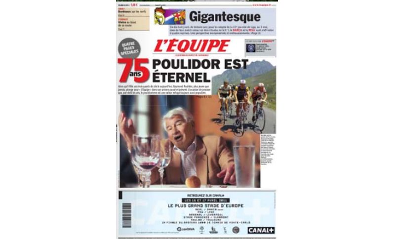 La copertian de L'Equipe e quattro pagine all'interno, ricche di storia e di immagini eccezionali: così la Francia dello sport celebra oggi i 75 ani del suo ciclista più amato di sempre, Raymond Poulidor.