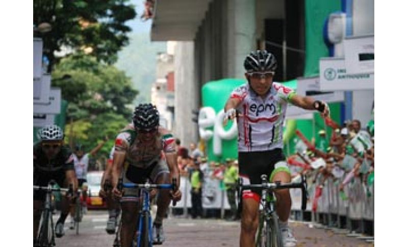 Il colombiano Walter Pedraza (foto Luis Barbosa) si è imposto nella prima tappa della Vuelta a Colombia regolando allo sprimt il connazionale Edwin Parra che si è consolato conquistando la maglia di leader della classifica generale.