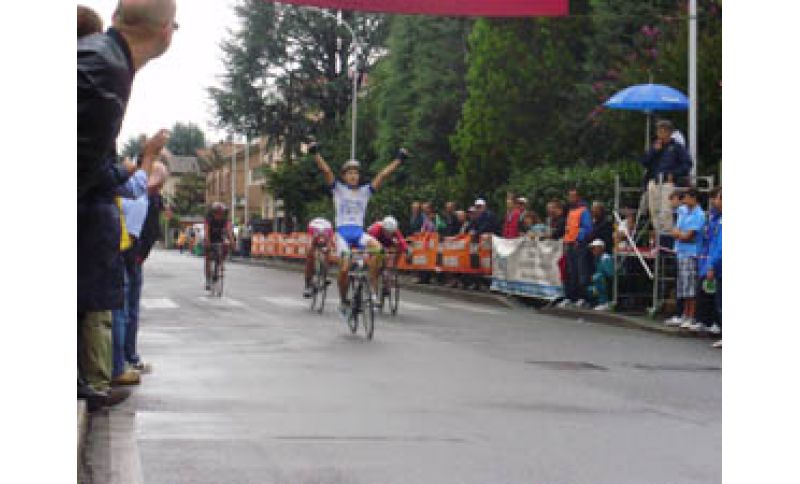 Ad alzare le braccia al cielo è il piemontese Carlo Franco, sedicenne di Pianezza (TO) alla 5a vittoria stagionale, che infreddolito, ma felice può esultare sotto un cielo finalmente azzurro.