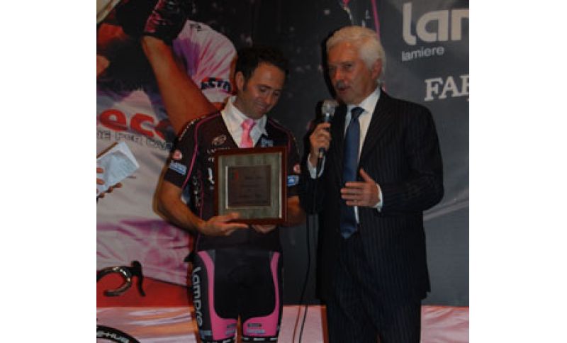 | 05/12/2011 | 10:56 A Palù di Giovo, insieme con tantissimi tifosi arrivati da ogni parte d'Italia per festeggiare la carriera di Gilberto Simoni, la Androni-CIPI ha reso omaggio al suo ex-capitano. Con Patron Mario Androni impegnato a Norimberga per motivi di lavoro, è stato Gianni Savio a premiare il due volte vincitore del Giro d'Italia e a ricordarne le imprese in maglia Androni-Diquigiovanni. "Sono onorato - ha detto il Team Manager torinese - di aver diretto un campione come Gibo Simoni. Lo ringrazio per le grandi emozioni che ci ha regalato e per il contributo che ha offerto alla squadra. In particolare ricordo un episodio: al Giro del Messico, in maglia di leader dopo aver vinto una tappa, essendosi reso conto che tutti gli avversari correvano contro di lui, mandò in fuga il giovane Jackson Rodriguez e lo aiutò a imporsi nella classifica finale. Un gesto di altruismo e di grande professionalità. Un vero esempio per i giovani."