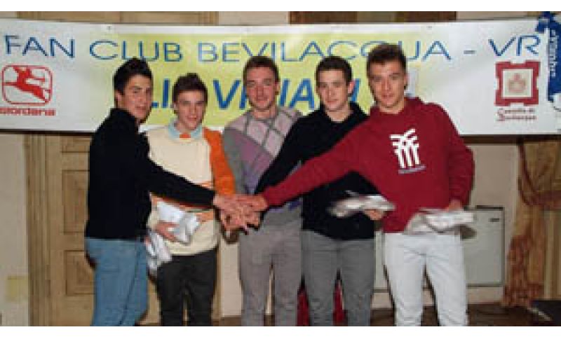 Una serata si festa, come ormai da tradizione, quella che si è tenuta con gli amici del Fans Club Elia Viviani di Bevilacqua nella sala delle feste del Castello di Cerato-Milesi di Bevilacqua sotto la regia di Agostino Contin. Un evento capace di mettere assieme il passato, presente e futuro del ciclismo veronese con ospiti illustri tra cui Nicola Minali, Renato Giusti e Sergio Bianchetto a rappresentare il ciclismo del passato e alcuni giovani veronesi che quest’anno hanno indossato la maglia tricolore ai campionati italiani su pista: Omar Leardini, Attilio Viviani e Riccardo Minali e il campione del veneto su strada Carloalberto Giordani. Il corridore di Vallese, reduce dalle visite mediche di idoneità, è apparso in gran forma e con una punta di commozione per tanto affetto, si è lasciato andare ai ricordi del passato e  all’importanza che hanno avuto alcune persone nella sua crescita, sia come uomo che come atleta, tra cui Lino Scapini della Luc Bovolone. Presenti anche il sindaco di Bevilacqua Valentino Girlanda, il nuovo parroco don Adrian, Giampaolo Negretti, nonna Gina e i genitori  di Elia, la presidente del club di Vallese Chiara Compri, il vice presidente dell’Ente Fiera del Riso  di Isola della Scala Stefano Giordani  e lo staff al completo del marchio Giordana capitanato dalla team manager Alessia Piccolo la quale ha consegnato ad Elia  una medaglia d’oro. “Il 2011 per il nostro campioncino - ha detto Contin - un ragazzo d’oro e bravo quanto modesto, che conosciamo da quando correva da giovanissimo con la Luc Bovolone, è stato l’anno della consacrazione. Elia è una delle eccellenze del nostro territorio e rappresenta il meglio del ciclismo giovanile nazionale”. A fare gli onori di casa la proprietaria del trecentesco Castello di Bevilacqua la signora Cerato-Milasi.