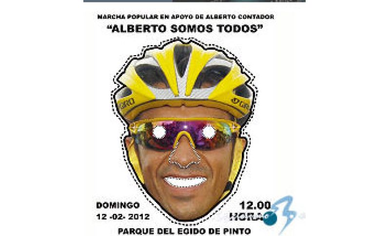 | 12/02/2012 | 17:37 Più di 2000 persone sono scese in strada a Pinto per manifestare la loro solidarietà ad Alberto Contador: tutti in bicicletta e tutti con la maschera indossata con le fattezze del campione squalificato al grido di “Siamo tutti Contador”. Manu Sopena, presidente dell’associazione Surbike che ha organizzato l’evento, commenta: «Un successo straordinario, un incredibile manifestazione d’affetto nei confronti del nostro campione».