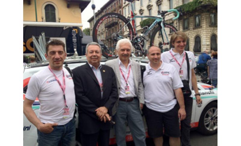 | 30/05/2012 | 12:13 I successi del Team Androni Venezuela al Giro d’Italia con le vittorie di Chavez e Ferrari, due secondi posti con Felline e De Marchi, e ancora due podi sempre con De Marchi e Ferrari e protagonismo assoluto degli atleti con numerose fughe, sono stati supportati dallo Staff del Coach Team Assistant , il gruppo di laureati in Scienze Motorie composto da Fabrizio Tacchino, Marco Compri, Mattia Michelusi e Diego Bragato, fortemente voluto da Gianni Savio e Giovanni Ellena e che seguono dallo scorso anno gli atleti della squadra con Test di valutazione, continuo monitoraggio dell’allenamento con i file degli strumenti Garmin, impostazione dei programmi di allenamento in accordo con le esigenze del Team di Gianni Savio e secondo le indicazioni dei DS Giovanni Ellena e Roberto Miodini. Il Coach Team Assistem ha inoltre fatto parte dell Staff in alcune tappe del giro a servizio degli atleti e per meglio interagire con gli atleti stessi alla fine di trarre importanti informazioni dai dati registrati in gara.Il vantaggio di avere uno staff che può fornire importanti indicazioni sulla scelta degli atleti nelle migliori condizioni atletiche per avere sempre una squadra determinata e protagonista. A completare lo Staff Tecnico anche l’osteopata Ugo De Maria, i dottori Luca Romano e Andrea Giorgi, oltre ai massaggiatori. Il Coach Team Assistant vuole ringraziare atleti e staff per le emozioni e soddisfazioni raccolte in questo Giro d’Italia. Nella foto, a Milano in occasione della cronometro finale, sono ritratti: Fabrizio Tacchino, il Presidente della Federazione Venezuelana Artemio Leonett, Gianni Savio, Marco Combri e Mattia Michelussi.