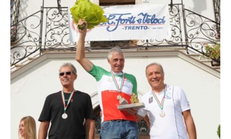 Nella foto: il podio del Campionato Italiano Giornalisti (over 55) con Alfredo Tradati, Francesco Moser e Claudio Pasqualin