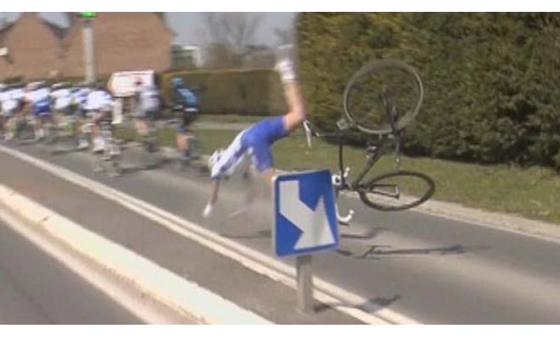 PROFESSIONISTI | 09/04/2013 | 18:55 Domenica alla Roubaix è stato protagonista di un incidente incredibile: Yoann Offredo, corridore della FDJ, pedalava in fondo al gruppo, evidentemente era distrato e non si è accorto di uno spartitraffco, lo ha investito in pieno ed è stato protagonista di un volo tremendo. Risultato, evidenziato dopo ben 48 ore dall'accaduto: frattura dello sterno. E domani il corridore, che soffre anche per alcune costole incrinate, si sottoporrà anche ad una tac cerebrale, come annuncia lui stesso su twitter.