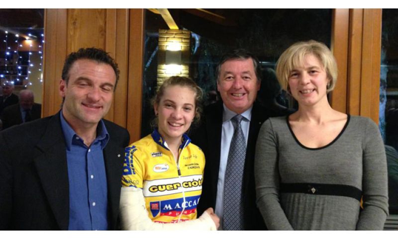 E’ stato assegnato a Silvia Pollicini il premio “Anni Verdi” per la sezione ciclismo del Panathlon International Club Varese. Il riconoscimento, giunto alla diciassettesima edizione, vuole gratificare i giovani atleti che abbinano un buon profitto scolastico ai risultati di prestigio nello sport. La ragazza di Cunardo, paese dell’alto varesotto, che ha  vestito quest’anno le insegne del team Ju Green nelle gare su strada e quelle della Scuola Ciclismo Cadrezzate Verso l’Iridie nelle competizioni di ciclocross, ha ottneuto durante la stagione ottimi riusltati sia nel cilcocross, con la vittoria nel Giro d’Italia, sia nelle competizioni su strada dove tre l’altro è risultata la vincitrice del quarto Trofeo Varese in Rosa Cicli Panther. Attualmente Silvia Pollicini è lontana dai campi di gara per un incidente patito in allenamento, ma la  grinta che la contraddistingue non gli manca: “ Penso di potermi riprendere già nel mese di dicembre per potere essere protagonista nel Campionato Italiano di Ciclocross nel mese di gennaio”. Oltre ai complimenti per il premio a Silvia è stato tributato “l’imbocca al lupo” da tutti i soci del Panathlon International Club Varese guidati dal presidente Daniela Colonna Preti.