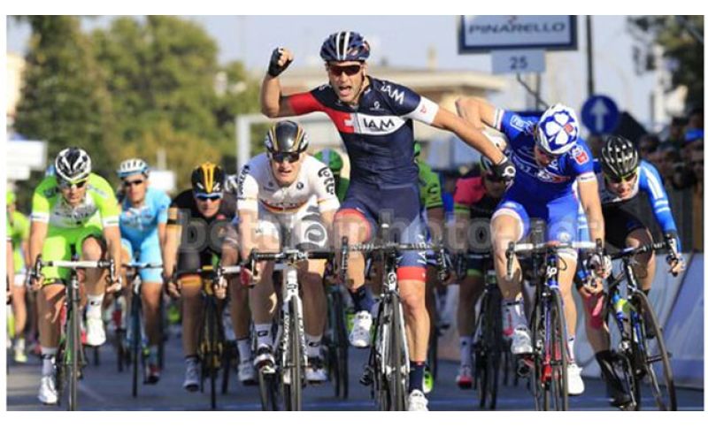Straordinaria volata di Matteo Pelucchi che abbraccia subito i compagni di squadra!. Impressionante lo sprint del brianzolo che ha rimontato negli ultimi metri Demare, Greipel, Bennett e Sagan. Dietro di loro Appollonio, Fortin, Modolo, Hurel e Sbaragli. Solo diciassettesimo Mark Cavendish che non ha fatto la volata.
