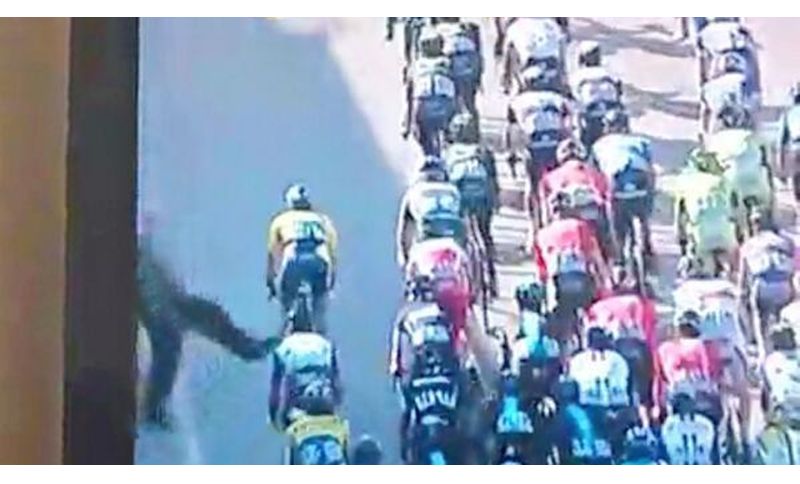 Ieri nel finale di tappa della Tirreno-Adriatico un pazzo, non ci vengono altre parole per definirlo, ha tirato un calcio verso il gruppo sfiorando Matteo Tosatto. Il gesto sconsiderato che poteva provocare una caduta ad alta velocità, è accaduto a poco meno di 34 km dal traguardo (presumibilmente in località Navacchio, ndr). Uno spettatore - non si sa per quale motivo - ha accennato una sorta di sgambetto alla bici di un corridore in gara. L'impatto tra il suo piede e il veneto della Saxo Tinkoff è stato evitato per un soffio.