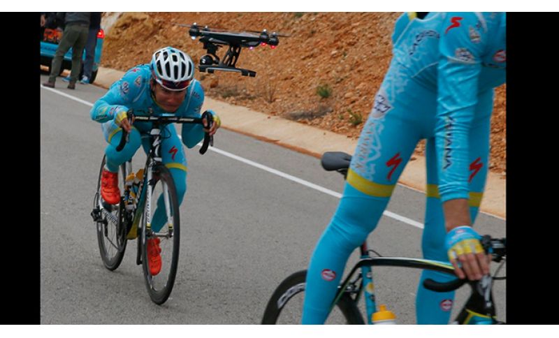 PROFESSIONISTI | 10/12/2015 | 12:00 La tecnologia è ormai all''ordine del giorno anche nel ciclismo e i ragazzi della Astana hanno avuto un nuovo compagno di allenamento sulle strade spagnole: un drone. L'apparecchiatura, dotata di telecamera, è servita a riprendere le pedalate dei corridori e i dati registrati potranno essere utilizzati dai tecnici per miglioare ulteriormente le prestazioni di Aru, Nibali e compagni.
