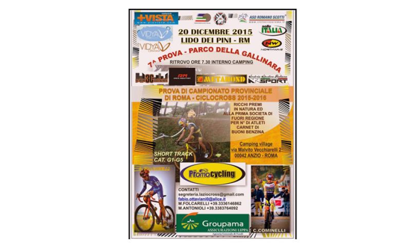 CICLOCROSS | 17/12/2015 | 08:10 Cresce l’attesa per la settima prova del Trofeo Romano Scotti +Vista Lazio Cross! Ad una settimana di distanza dalla prova congiunta con il Giro d’Italia Ciclocross (Pescia Romana) incontreremo ancora tutti gli appassionati della disciplina nella bella oasi verde di Lido dei Pini (Anzio), all’interno del Parco della Gallinara. Questa gara sarà valevole come prova di Campionato Provinciale di Roma.