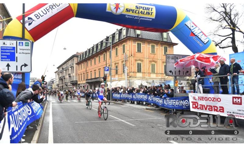 Gussago-Santissima. Il corridore di Romano d'Ezzelino allo sprint supera il