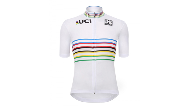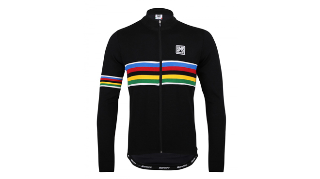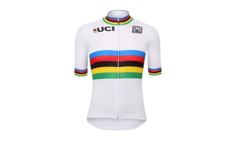 Oltre alla classica Maglia del Campione del Mondo, ci sono tre maglie che riprendono l’iride dando nuovo smalto a questi cinque colori che hanno fatto la storia del ciclismo. In particolare modo mi riferisco alla Maglia UCI Master Campione del mondo, la Maglia UCI 2016 e la Maglia UCI Iride, tutte e tre con dettagli tecnici di prima avanguardia e materiali innovativi. La chicca per i più esigenti è la Maglia UCI Wool per la mezza stagione, elegante e carica di storia come poche.