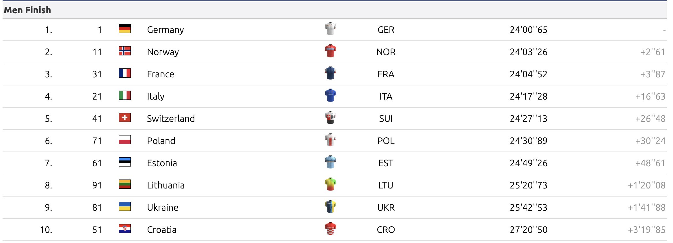 24'00" per la Germania, il miglior tempo tra i maschi è il loro