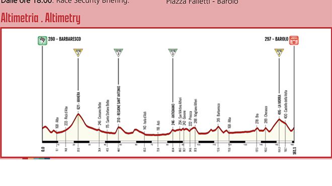Prima di arrivare a Barolo ci sarà da affrontare la salita de la Morra che terminerà a 10 km dal traguardo.