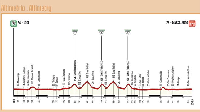 I primi 45 chilometri della frazione odierna saranno completamente pianeggianti ad eccezione della breve ascesa alla collina di San Colombano.
