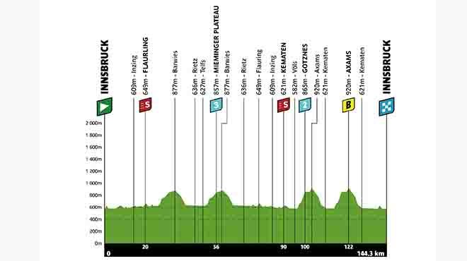 Si comincia con la tappa inaugurale con partenza e arrivo a Innsbruck, sono 144,3 i chilometri da percorrere.