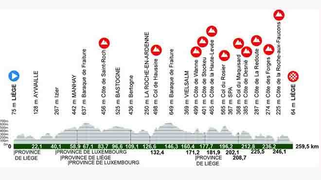 La corsa molto spesso si decide sulla Redoute, a 35 km dall'arrivo, mentre l'ultima asperità è la Roche aux Faucons a 13 km da Liegi