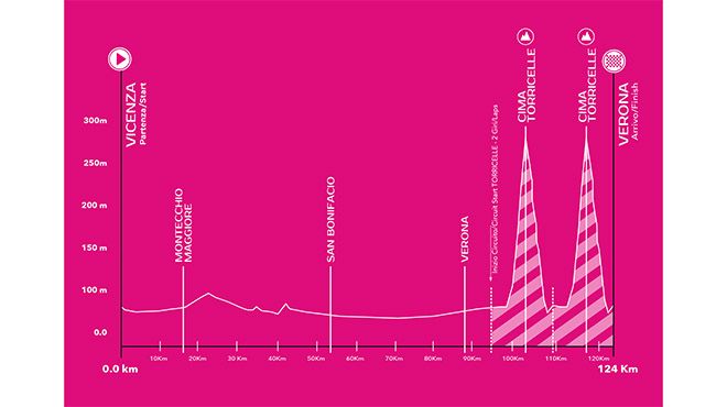 Partenza fissata a Vicenza e traguardo posto a Verona, a pochi passi dall'Arena, dopo 116,2 chilometri con due giri finali in città altrettanti passaggi sulla salita delle Torricelle.